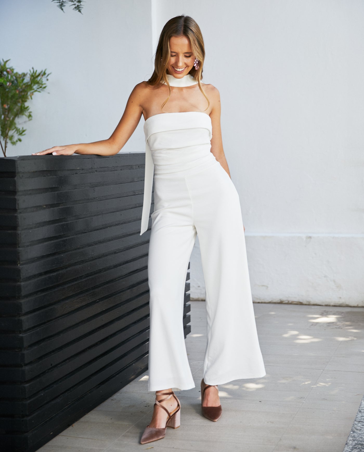 Enterito de Novia María Ignacia Ivory confeccionado en crepe tela elasticada, con elastico en la cintura que realzan la silueta. Su diseño largo ofrece un look elegante y femenino, ideal para nan. Este vestido es parte de nuestra colección australia.