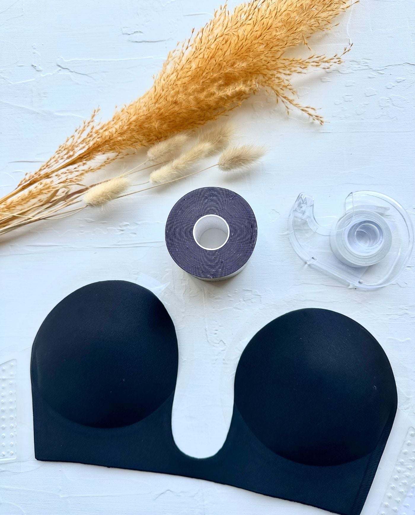 Pack de lencería invisible diseñado para vestidos con escote profundo, permitiendo soporte sin tirantes ni espalda visible.