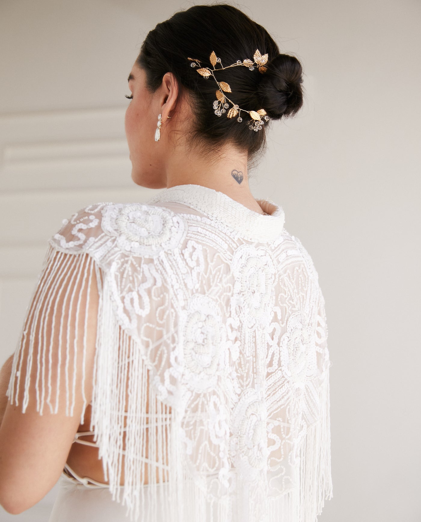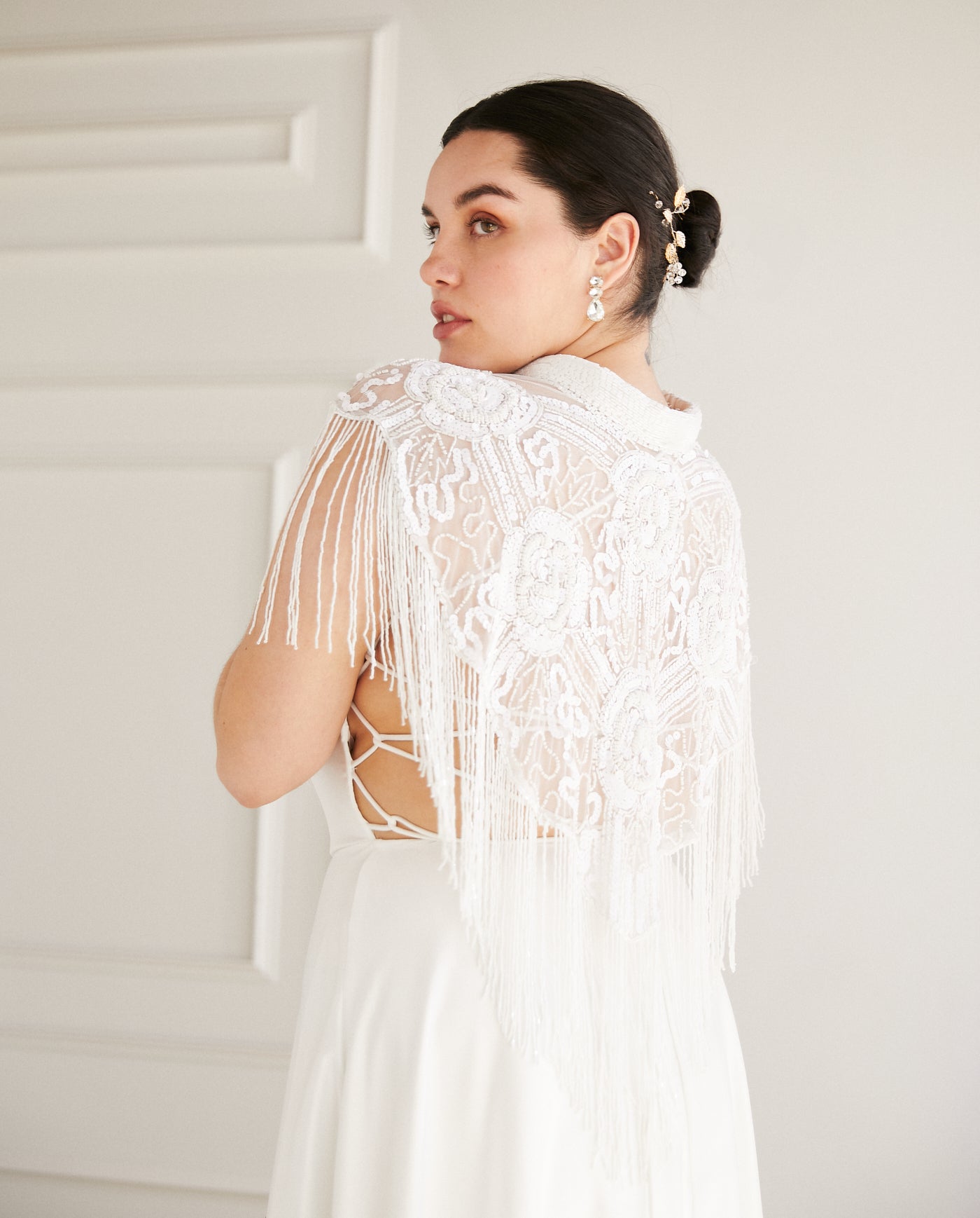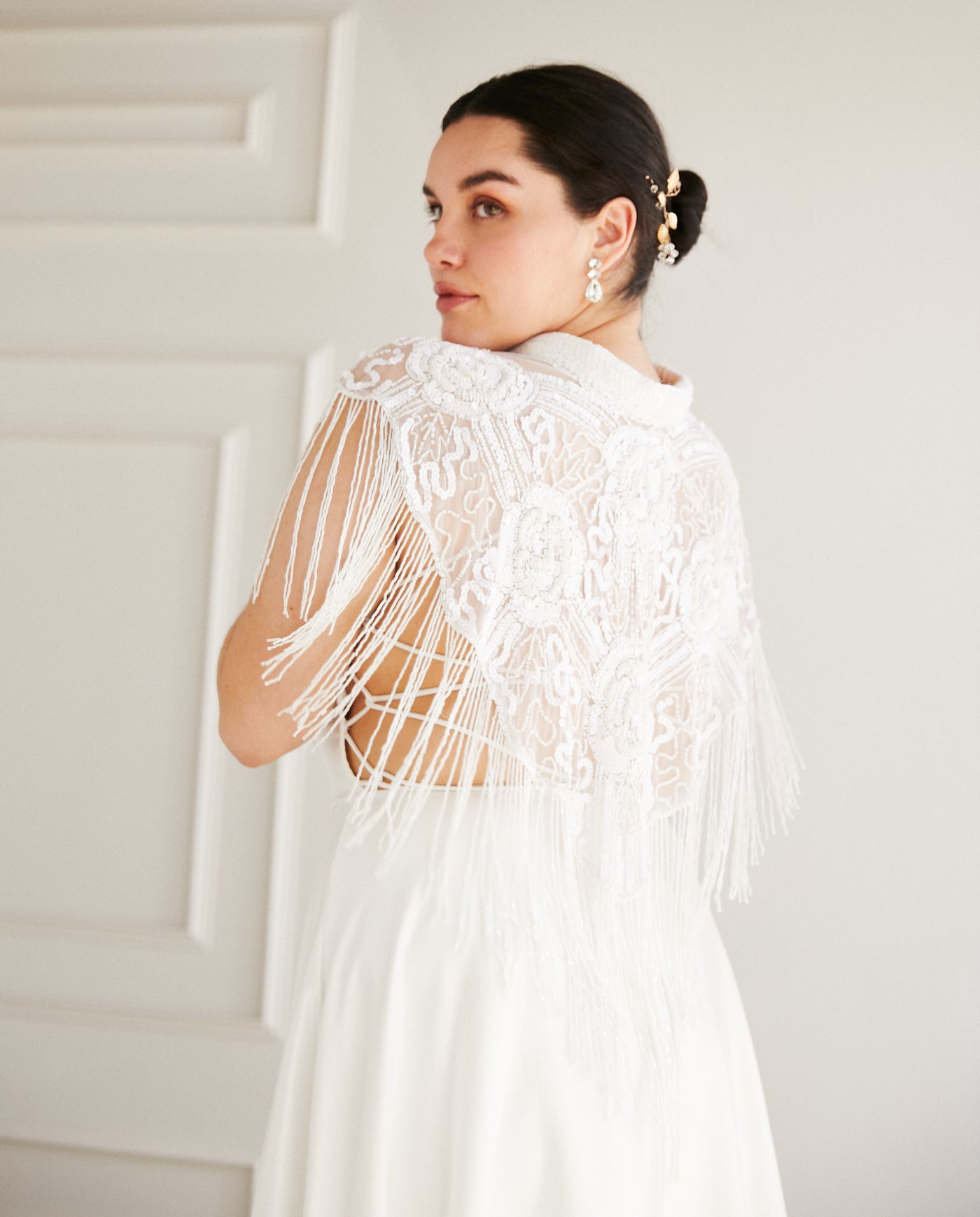 Capa de mostacillas, hecha 100% a mano por los mejores artesanos de la India. Esta capa es ideal para complementar tu look de fiesta, puedes usarla como más te guste, con la abertura hacia atrás o hacia adelante. Tiene el cuello reforzado para suavizar el tacto y para mayor comodidad. Sus mostacillas y cuentas de cristal captan la luz desde cualquier ángulo. Con este complemento te sentirás única en ese momento especial.