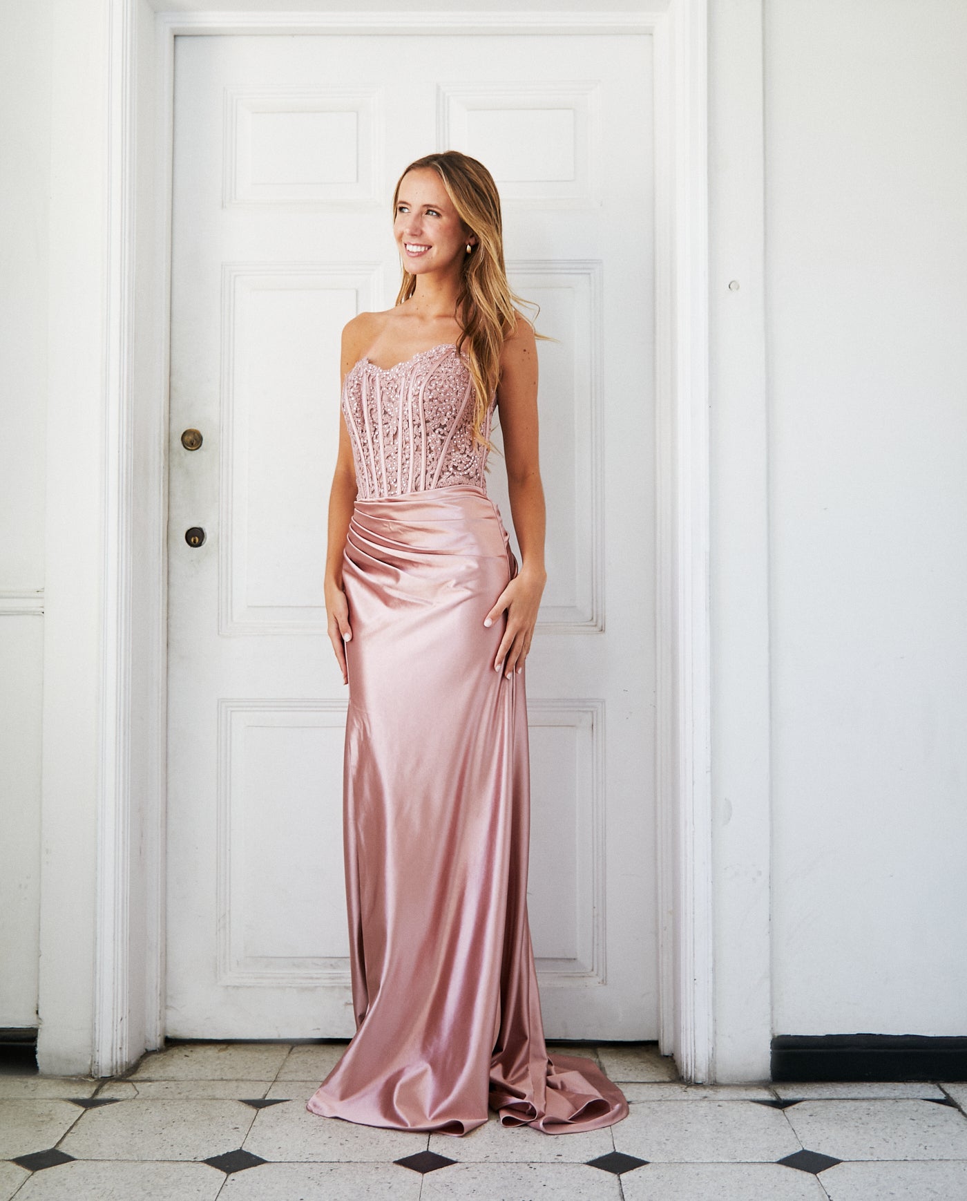 Sumérgete en la sofisticación de este vestido largo Zahara. Elaborado en Satín en tonalidad Rosado. El corset realza la cintura y define la silueta, de igual forma la abertura en la pierna ofrece libertad de movimiento y un toque de sensualidad. Creado para invitada matrimonio de noche y graduación. Descubre todos nuestros vestidos de fiesta para cada ocasión.