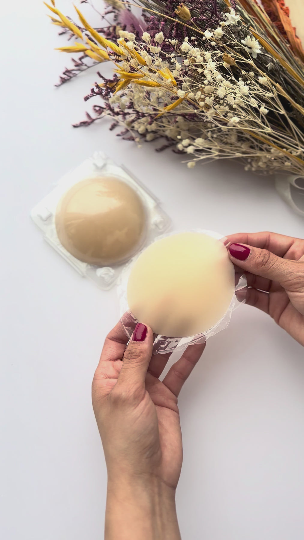 3. Coloca el cubre pezón presionando suavemente desde el centro hacia los bordes hasta que quede bien adherido.