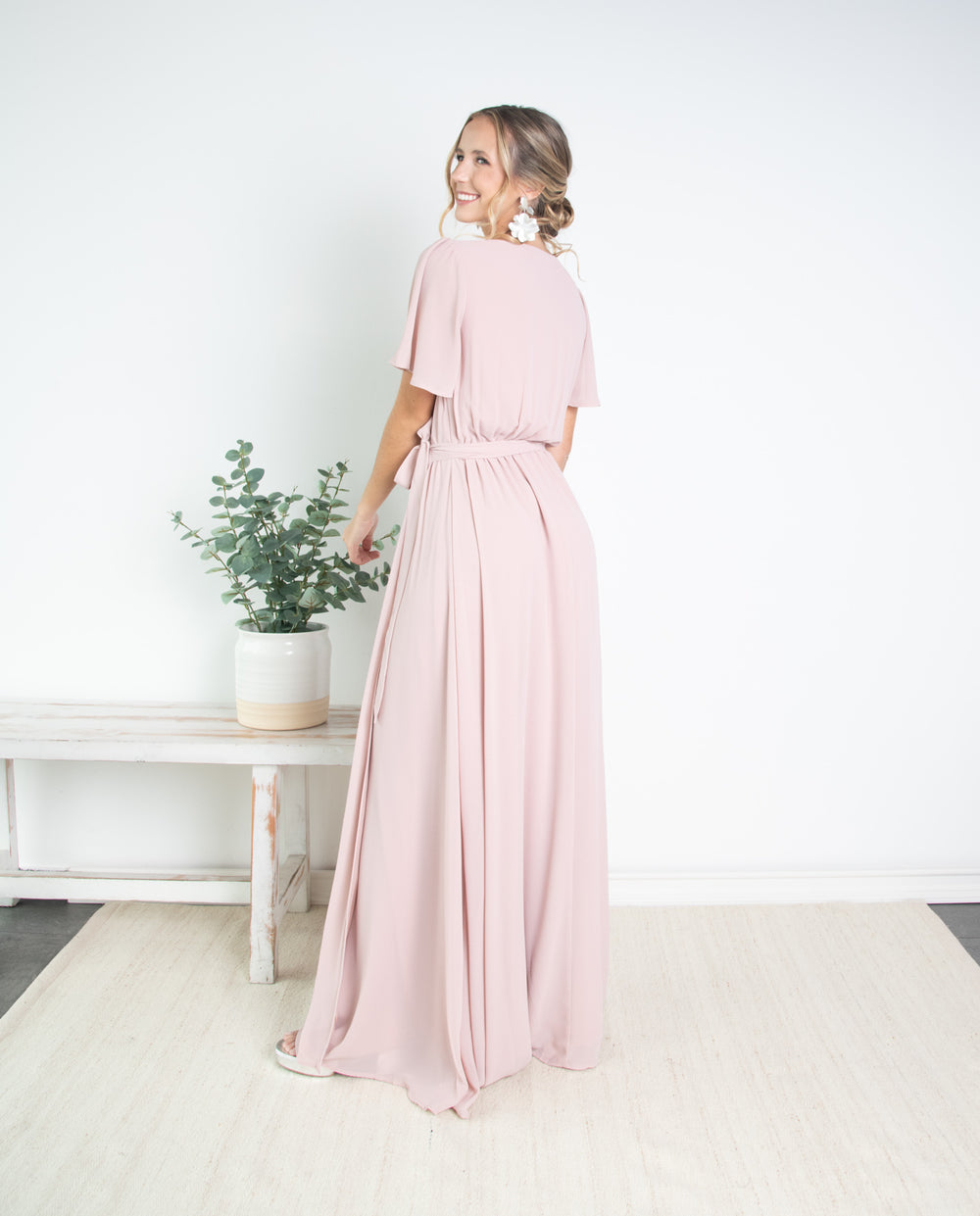 Nuestro vestido Consuelo, es un vestido largo envolvente confeccionado en gasa. Al ser envolvente, se adapta muy bien a todo tipo de cuerpo y forma un escote en V. En el área del busto, el vestido tiene delicados pliegues hacia la cintura. Aquí, el vestido tiene un lazo para la cintura, este lo puedes ajustar y amarrar según tu gusto. Te recomendamos a un lado o por la parte posterior del vestido. Este vestido tiene también mangas semitransparentes. Cuenta con forro interior.