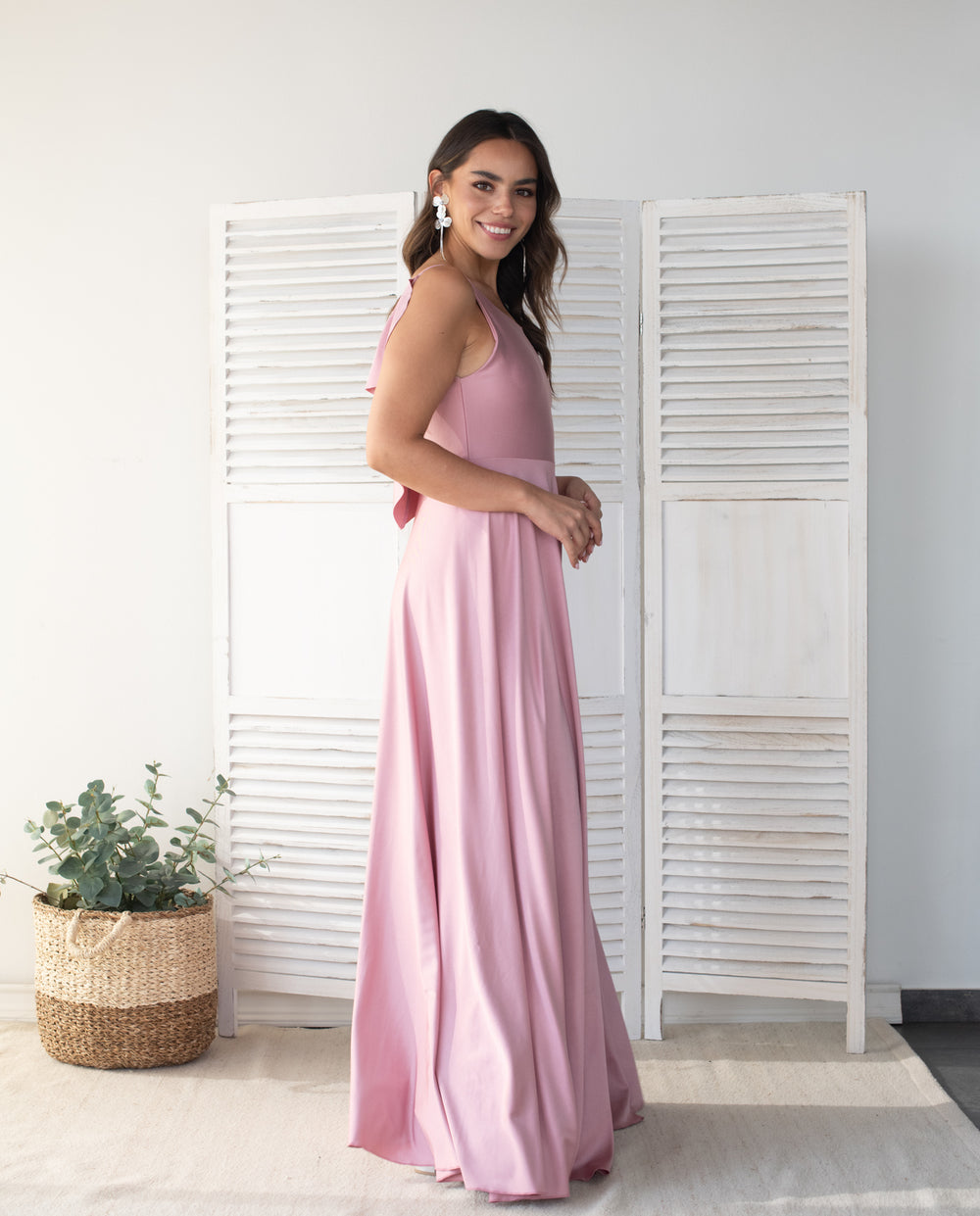 Nuestro vestido Daniela es un vestido largo de fiesta, confeccionado en lycra dupont, que es una tela ultra elástica que se adapta muy bien al cuerpo. Su diseño tiene un escote recto cerrado y su espalda descubierta con volados como protagonistas del vestido. Además tiene un corte en la cintura alta desde donde comienza el faldón amplio. Este vestido tiene un peso y movimiento increíble.