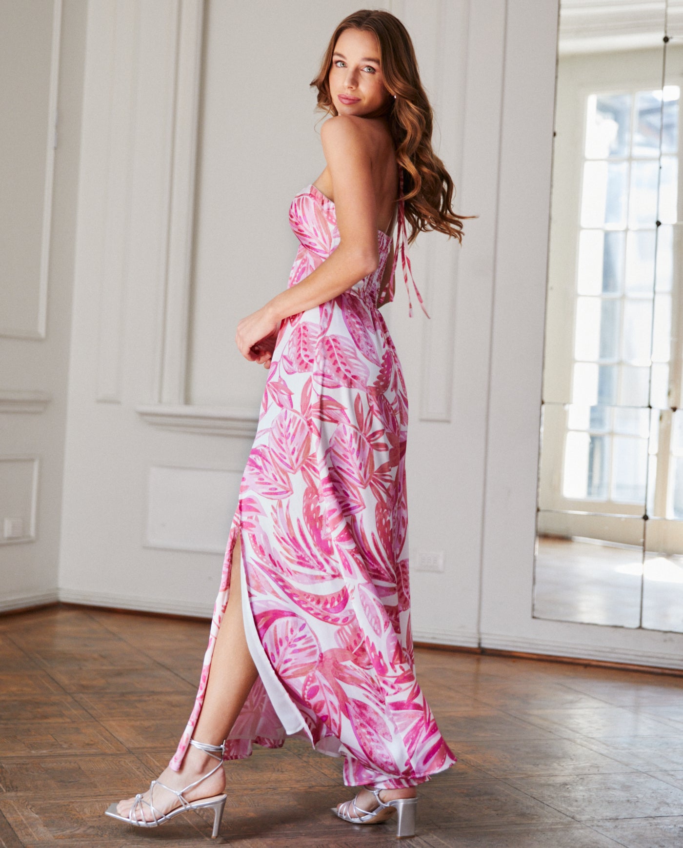 Vestido Largo de Fiesta Solana Fondo Rosado confeccionado en Satín fucsia, con tirantes ajustables que realzan la figura de forma natural. Su diseño largo ofrece un look elegante ideal para invitada matrimonio de día, titulación. Este vestido es parte de nuestra Colección AUSTRALIA.