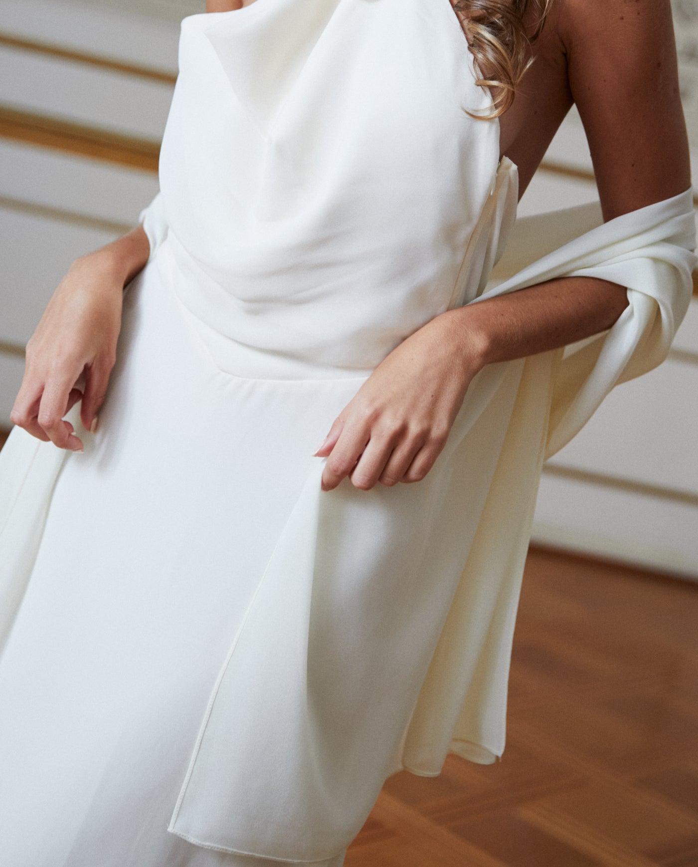 Confeccionado en gasa liviana y de caída suave, aporta movimiento, elegancia y un acabado delicado sin recargar el look. Es el accesorio perfecto para cubrir hombros en eventos formales, ceremonias religiosas o celebraciones de noche.