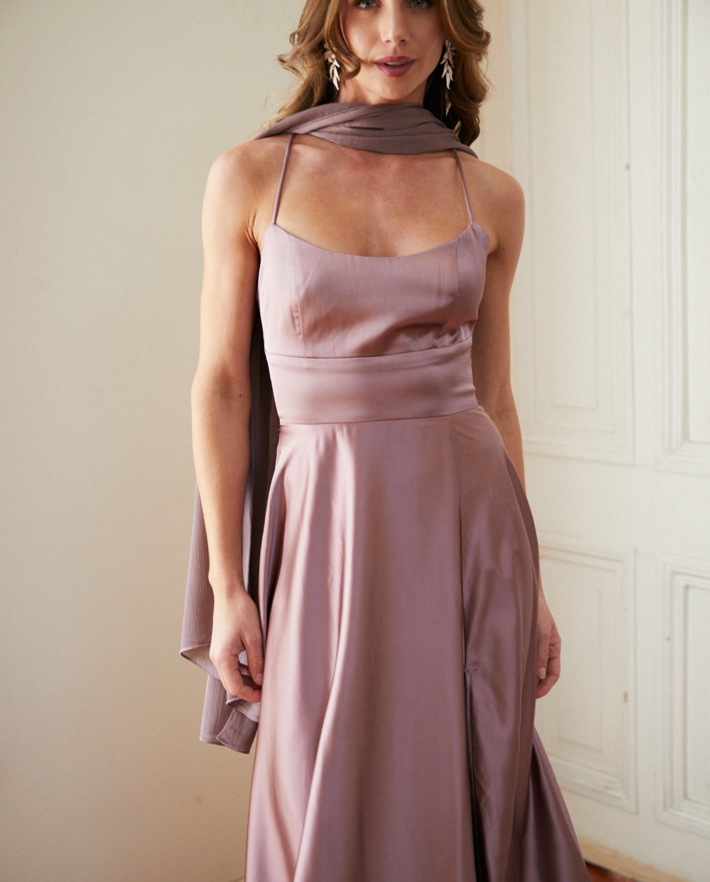 Nuestro Maxi pañuelo Antonia de satín con textura en líneas, es ideal para elevar vestidos de fiesta, looks de invitada y outfits formales. Su formato amplio permite usarlo como capa elegante, chal de fiesta o echarpe para matrimonio.