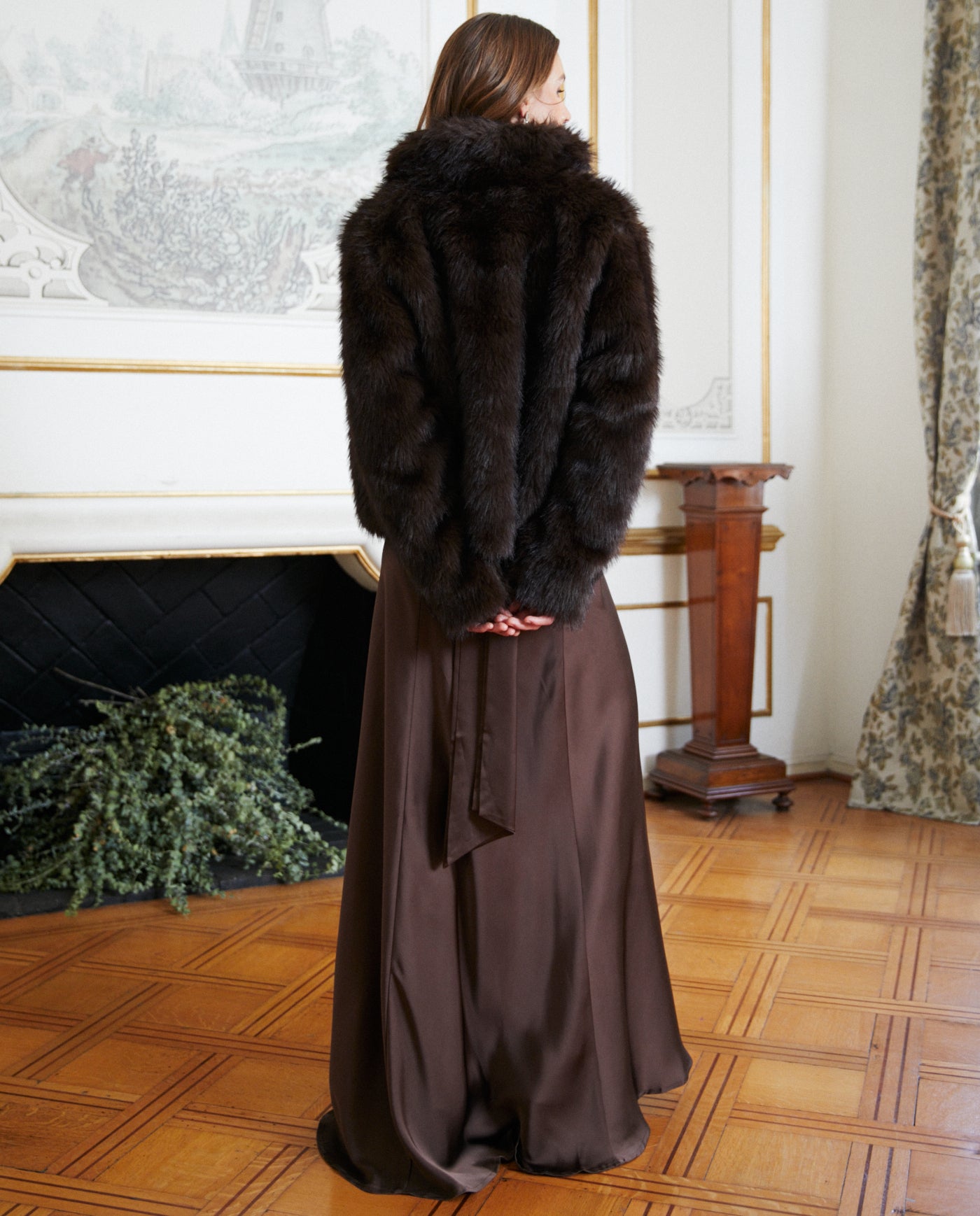 Peludo Tamara con Cierre Chocolate es un chaqueta confeccionado en tela textura tipo piel tono chocolate. Un accesorio versátil y elegante, ideal para complementar vestidos de fiesta y de novia, aportando estilo y calidez a tu look en cualquier evento especial.