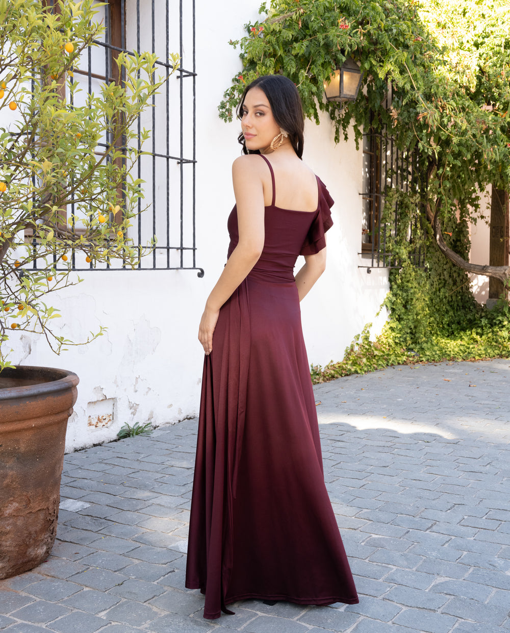 Conjunto De Fiesta Sole Un Hombro Burdeo