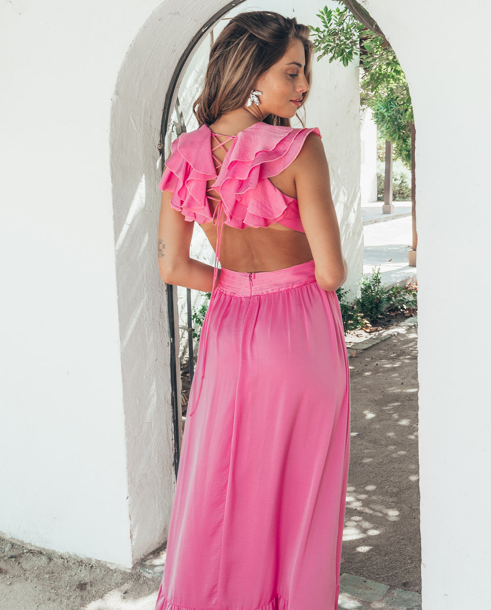 VESTIDO LARGO DE FIESTA OFELIA ROSADO