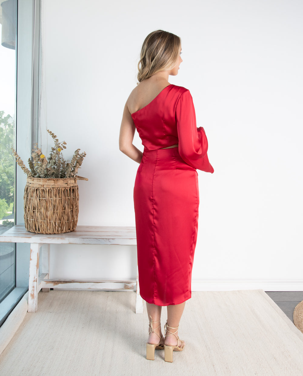 Vestido Midi de Fiesta Adriana Una Manga Rojo