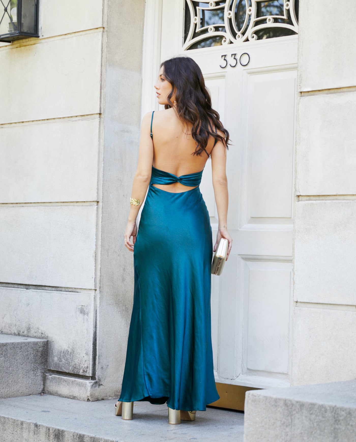Vestido de Fiesta Largo Moscú Satin Verde Oscuro confeccionado en tela no elasticada, con vestido espalda rebajada que realzan la figura. Su diseño de falda larga y caída fluida lo convierte en una opción elegante para invitada matrimonio de noche, graduación, fiesta empresa, fiesta gala. Este diseño es parte de nuestra Colección AUSTRALIA.