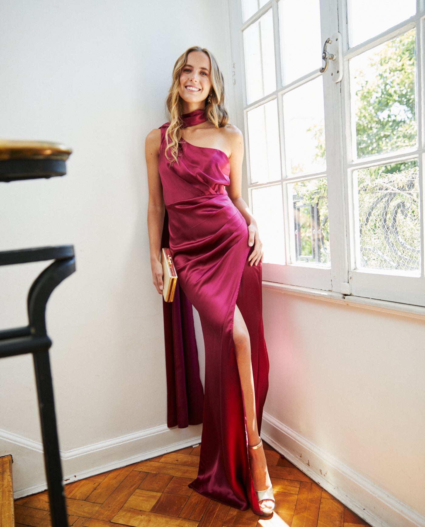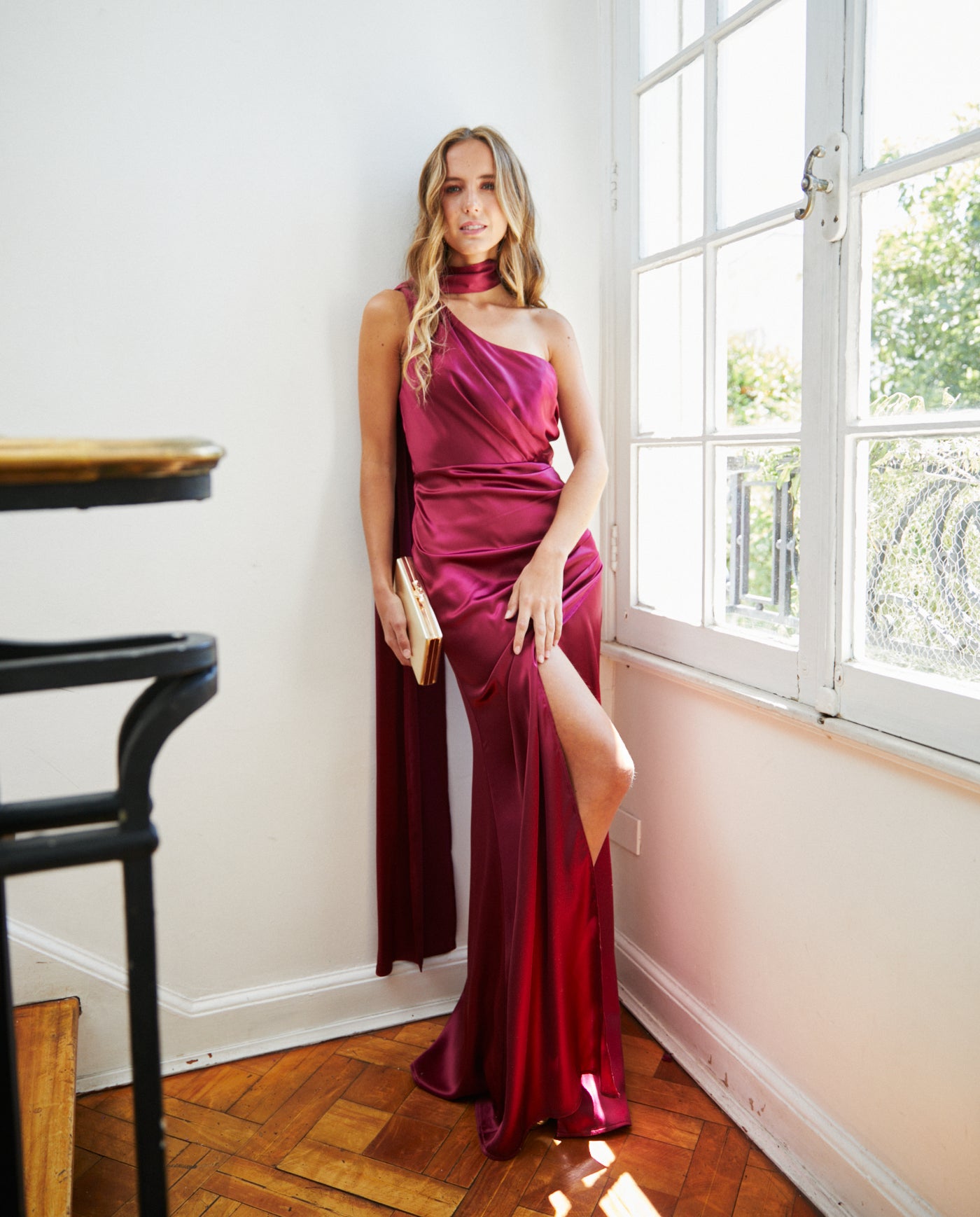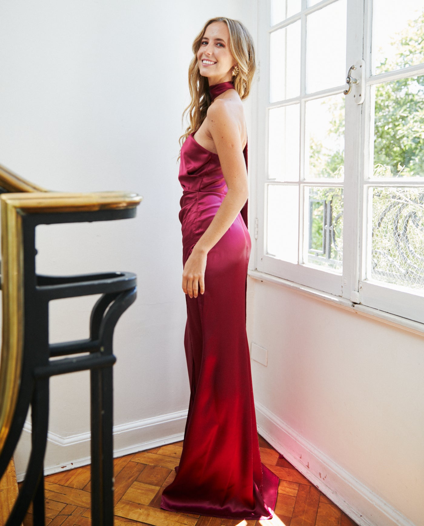 Vestido Largo de Fiesta Joaquina Cherry confeccionado en tela no elasticada, con abertura lateral, choker/lazo que realzan la figura. Su diseño de falda larga y caída fluida lo convierte en una opción elegante para invitada matrimonio de noche, graduación, fiesta empresa, fiesta gala. Este diseño es parte de nuestra COLECCIÓN PROPIA.