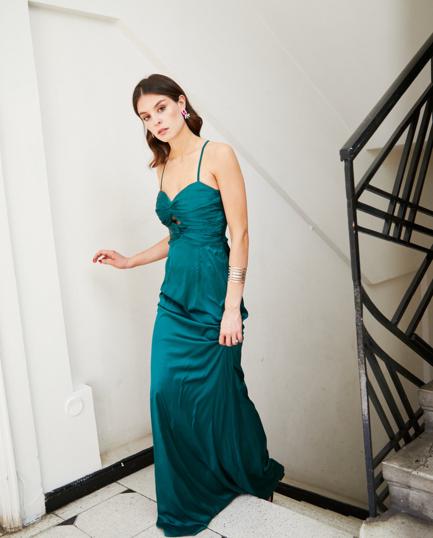Vestido Largo de Fiesta Zaragoza Verde Oscuro confeccionado en tela no elasticada, con vestido espalda rebajada, tirantes ajustables que realzan la figura. Su diseño de falda larga y caída fluida lo convierte en una opción elegante para invitada matrimonio de noche, graduación, fiesta empresa, fiesta gala. Este diseño es parte de nuestra Colección EE.UU.