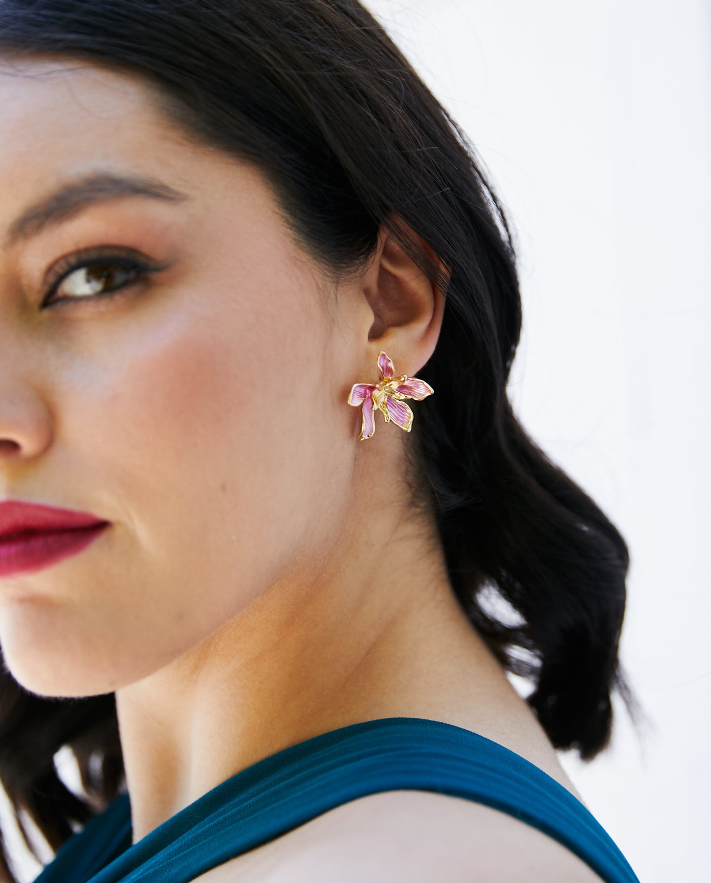 Aros Violeta Rosado Oscuro es un accesorio confeccionado en material de buena caída, con detalles que destacan que complementa tus looks de fiesta con un estilo elegante.