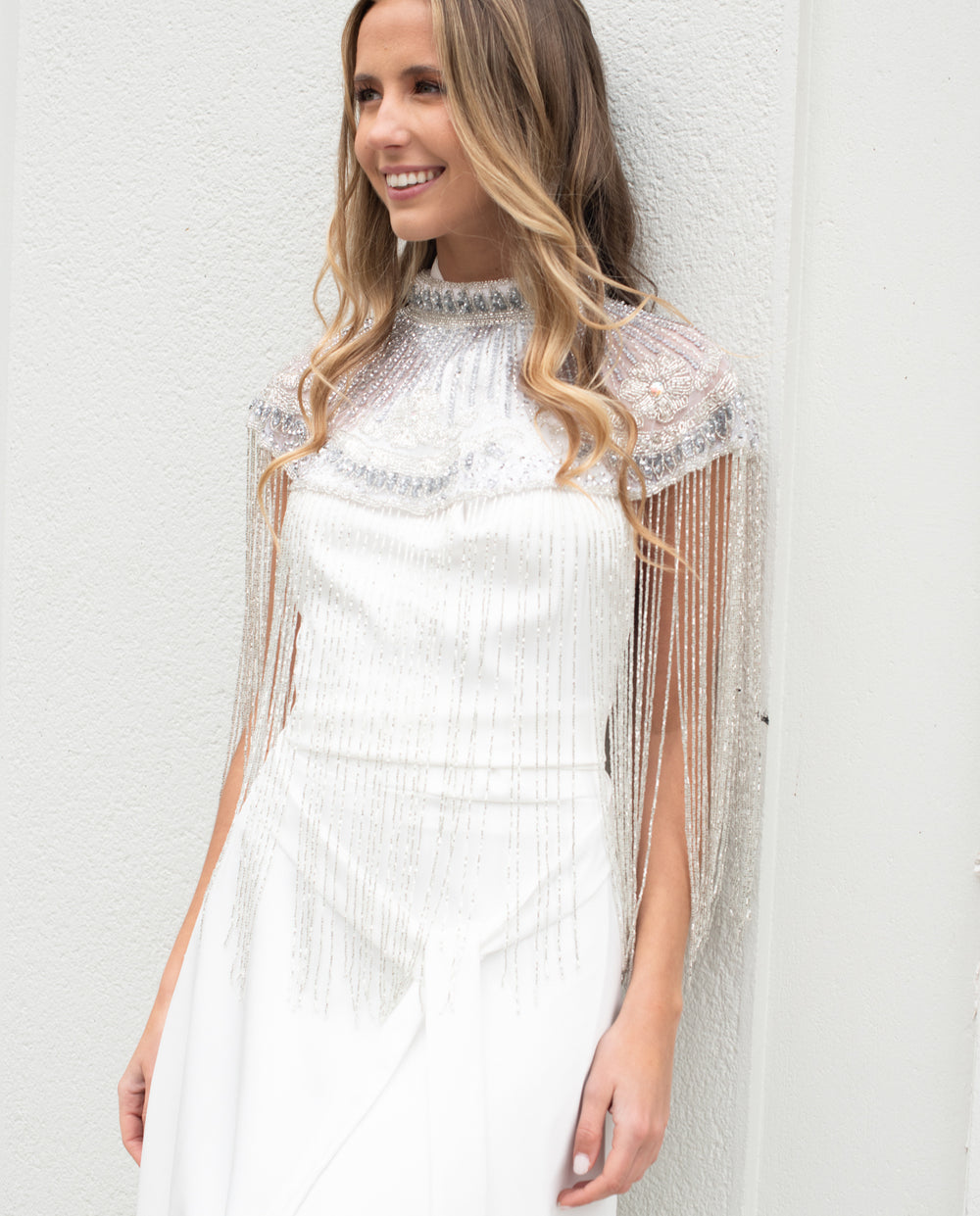 Capa Bordada de Mostacilla Nicha Blanco/ Plateado